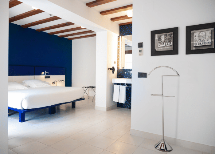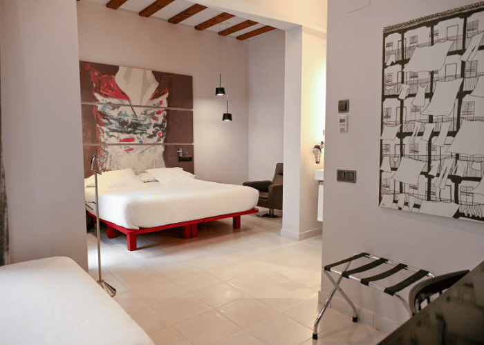 Habitación amplia y diáfana de unos 28 m2 recomendada para 3 o 4 personas. Su distribución se compone de una cama «king size» o dos camas individuales (bajo petición) y una cama de matrimonio de 135 x 190 cm.